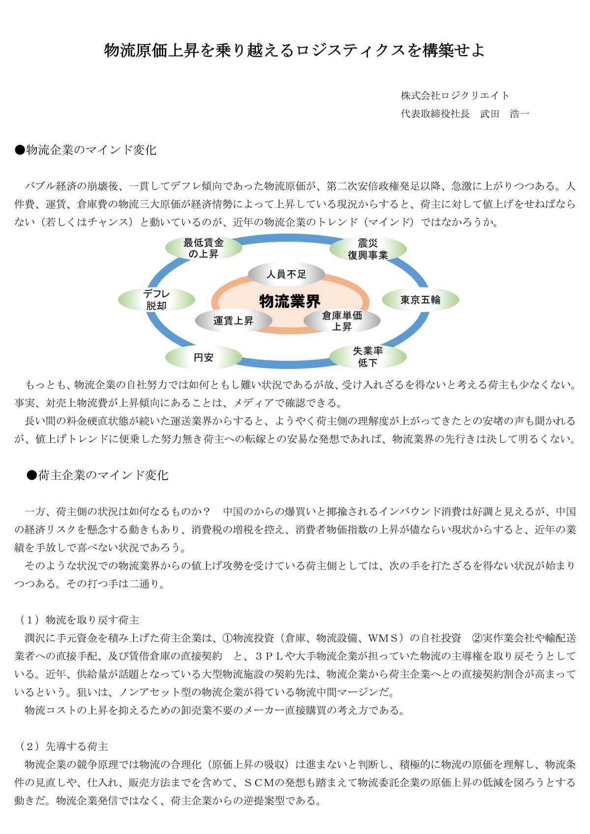 「ロジガイ 2016」20~21ページに物流原価上昇を乗り越えるロジスティクスを構築せよが掲載されました。