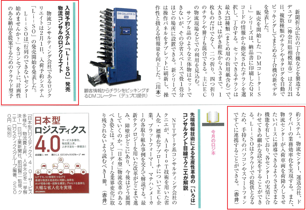 月刊 ロジスティクス・ビジネス 2019年4月号に当社予約システムの記事が掲載されました。